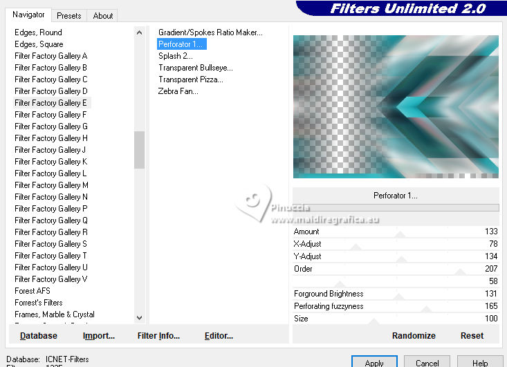 8. Effets>Modules Externes>Filters Unlimited 2.0 - Filter Factory Gallery E - Perforator 1, par défaut.