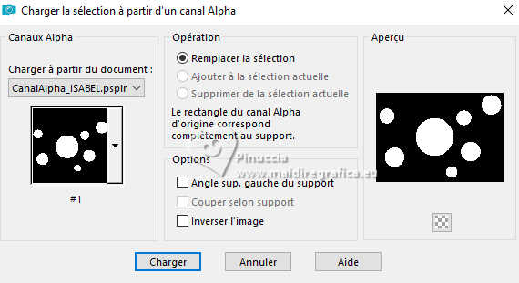 mais contient les sélections enregistrées sur le canal alpha.