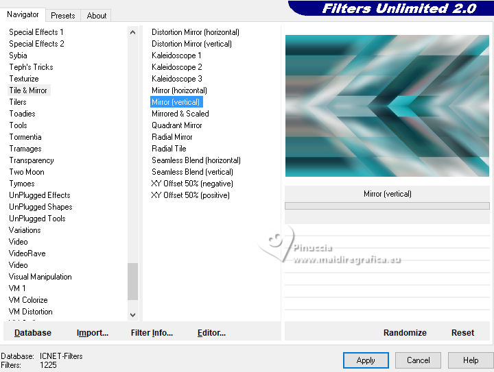 7. Effets>Modules Externes>Filters Unlimited 2.0 - Tile & Mirror - Mirror (vertical)