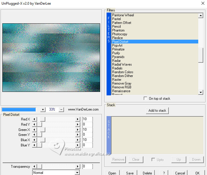 12. Effets>Modules Externes>VanDerLee - Unplugged-X - Pixel Distort, par défaut.