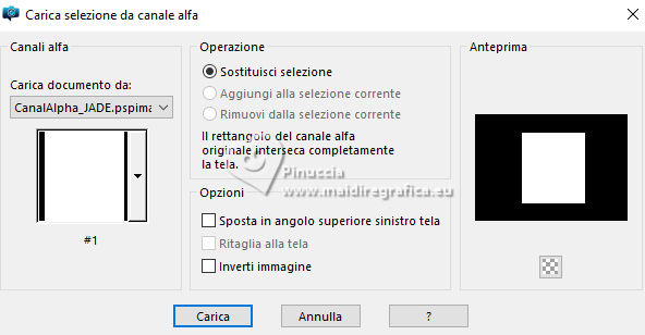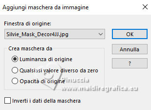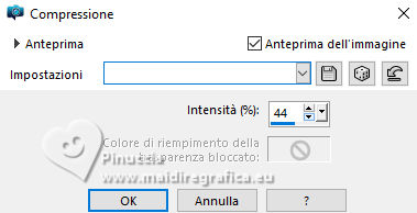 qui puoi trovare qualche risposta ai tuoi dubbi. Se l'argomento che ti interessa non è presente, ti prego di segnalarmelo. Questo tutorial è stato realizzato con PSP2020 e tradotto con PSPX9 e PSP2020, ma può essere eseguito anche con le altre versioni di PSP. Dalla versione X4, il comando Immagine>Rifletti è stato sostituito con Immagine>Capovolgi in orizzontale, e il comando Immagine>Capovolgi con Immagine>Capovolgi in verticale. Nelle versioni X5 e X6, le funzioni sono state migliorate rendendo disponibile il menu Oggetti. Con la nuova versione X7, sono tornati Rifletti>Capovolgi, ma con nuove varianti. Vedi la scheda sull'argomento qui traduzione in francese/traduction en français qui/ici traduzione in inglese/english translation qui/here Versioni/Versions qui![]() Occorrente: ![]() Grazie per il tube Luz Cristina e per la maschera Silvie Il resto del materiale è di Yedralina (in questa pagina trovi i links ai siti dei creatori di tubes) Filtri: se hai problemi con i filtri, consulta la mia sezione filtri qui Filters Unlimited 2.0 qui Two Moon - VerticalChopBlur qui VM Distortion - FlipChop qui Toadies - What are you qui AAA Frames - Foto Frame qui Facoltativo: Nik Software - Color Efex Pro qui I filtri Two, VM Distortion e Toadies si possono usare da soli o importati in Filters Unlimited (come fare vedi qui) Se un filtro fornito appare con questa icona ![]() non esitare a cambiare modalità di miscelatura e opacità secondo i colori utilizzati. ![]() Metti il preset Emboss 4 nella cartella Impostazioni predefinite. Apri la maschera in PSP e minimizzala con il resto del materiale. Se hai problemi con il canale alfa, apri una nuova immagine trasparente 1000 x 700 pixels e usa le selezioni da disco. Imposta il colore di primo piano con #666865, e il colore di sfondo con #cacac7. ![]() colore 3 bianco #ffffff Per cominciare imposta il colore di primo piano con il colore bianco ![]() 1. Apri CanalAlpha_JADE Finestra>Duplica o sulla tastiera maiuscola+D per fare una copia. ![]() Chiudi l'originale. La copia, che sarà la base del tuo lavoro, non è vuota, ma contiene le selezioni salvate sul canale alfa. Riempi l'immagine trasparente con il colore di sfondo.2. Selezione>Seleziona tutto. Apri il tube 9088-LuzCristina.pspimage ![]() Modifica>Copia. Torna al tuo lavoro e vai a Modifica>Incolla nella selezione. Selezione>Deseleziona. 3. Effetti>Effetti di immagine>Motivo unico, con i settaggi standard. ![]() Regola>Sfocatura>Sfocatura gaussiana - raggio 20. ![]() 4. Effetti>Plugins>Filters Unlimited 2.0 - Two Moon - VerticalChopBlur ![]() 5. Effetti>Plugins>Filters Unlimited 2.0 - Tile & Mirror - Mirror (Vertical). ![]() 6. Effetti>Effetti di riflesso>Specchio rotante, con i settaggi standard. ![]() 7. Livelli>Duplica. Immagine>Ridimensiona, al 40%, tutti i livelli non selezionato. 8. Immagine>Ruota per gradi - 90 gradi a sinistra. ![]() 9. Effetti>Effetti di immagine>Motivo unico, con i settaggi standard. ![]() 10. Effetti>Plugins>Filters Unlimited 2.0 - VM Distortion - FlipChop, con i settaggi standard. ![]() Nota: Non so perchè, ma questo filtro divide i suoi effetti. Se non lo trovi in alto alla lista di Unlimited, cercalo in basso (naturalmente, se lo hai importato.... ah ah) 11. Effetti>Effetti di riflesso>Specchio rotante. ![]() Effetti>Effetti 3D>Sfalsa ombra, colore nero. ![]() 12. Effetti>Plugins>Filters Unlimited 2.0 - Toadies - What are you, con i settaggi standard ![]() 13. Effetti>Effetti di riflesso>Specchio rotante, con i settaggi standard. ![]() Effetti>Effetti di bordo>Aumenta di più. Cambia la modalità di miscelatura di questo livello in Luminanza. 14. Selezione>Carica/Salva Selezione>Carica Selezione da canale alfa. La selezione #1 è subito disponibile. Devi soltanto cliccare Carica. ![]() o carica la selezione da disco ©Yedralina_Sel0102 Selezione>Innalza selezione a livello. Mantieni la modalità di miscelatura di questo livello in Luminanza. Selezione>Deseleziona. 15. Livelli>Nuovo livello raster. Riempi il livello con il colore bianco di primo piano.16. Livelli>Nuovo livello maschera>Da immagine Apri il menu sotto la finestra di origine e vedrai la lista dei files aperti. Seleziona la maschera Silvie_Mask_decor4 ![]() Livelli>Unisci>Unisci gruppo. Immagine>Rifletti>Rifletti orizzontalmente. 17. Livelli>Duplica. Immagine>Rifletti>Rifletti verticalmente (Immagine>Capovolgi). Immagine>Rifletti>Rifletti orizzontalmente. Livelli>Unisci>Unisci giù. 18. Effetti>Filtro definito dall'utente - Preset Emboss 4. ![]() 19. Apri il misted 3490©Yedralina.png ![]() Cancella il watermark e vai a Modifica>Copy. Torna al tuo lavoro e vai a Modifica>Incolla come nuovo livello. Immagine>Ridimensiona, se necessario, per il tube fornito al 55%, tutti i livelli non selezionato. Posiziona correttamente il tube al centro.Regola>Messa a fuoco>Metti a fuoco. 20. Livelli>Nuovo livello raster. Selezione>Carica/Salva selezione>Carica selezione da canale alfa. Apri il menu delle selezioni e carica la selezione #2 (da disco ©Yedralina_Sel0103) ![]() 21. Modifica>Incolla nella selezione - il misted è ancora in memoria. Mantieni selezionato. 22. Effetti>Plugins>AAA Frames - Foto frame. ![]() 23. Effetti>Effetti 3D>Sfalsa ombra, colore 1 #666865. ![]() Selezione>Deseleziona. 24. Effetti>Effetti di riflesso>Specchio rotante. ![]() Regola>Messa a fuoco>Accentua messa a fuoco. 25. Apri il tube Deco00370©Yedralina ![]() Modifica>Copia. Torna al tuo lavoro e vai a Modifica>Incolla come nuovo livello. Non serve spostarlo. 26. Livelli>Duplica. Immagine>Rifletti>Rifletti orizzontalmente. 27. Effetti>Effetti di distorsione>Stringi o Compressione. ![]() Regola>Messa a fuoco>Metti a fuoco. 28. Apri il tube Deco00371©Yedralina ![]() Modifica>Copia. Torna al tuo lavoro e vai a Modifica>Incolla come nuovo livello. 29. Oggetti>Allinea>Superiore o tasto K per attivare lo strumento Puntatore ![]() Posizione X: 318,00 - Posizione Y: 0,00 ![]() 30. Attiva il livello inferiore. Modifica>Copia Modifica>Incol
