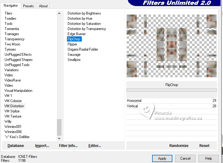 10. Effects>Plugins>Filters Unlimited 2.0 - VM Distortion - FlipChop, default settings.