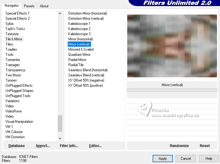 5. Effects>Plugins>Filters Unlimited 2.0 - Tile & Mirror - Mirror (Vertical).