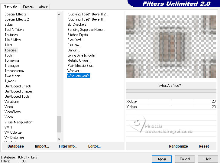 12. Effects>Plugins>Filters Unlimited 2.0 - Toadies - What are you, default settings