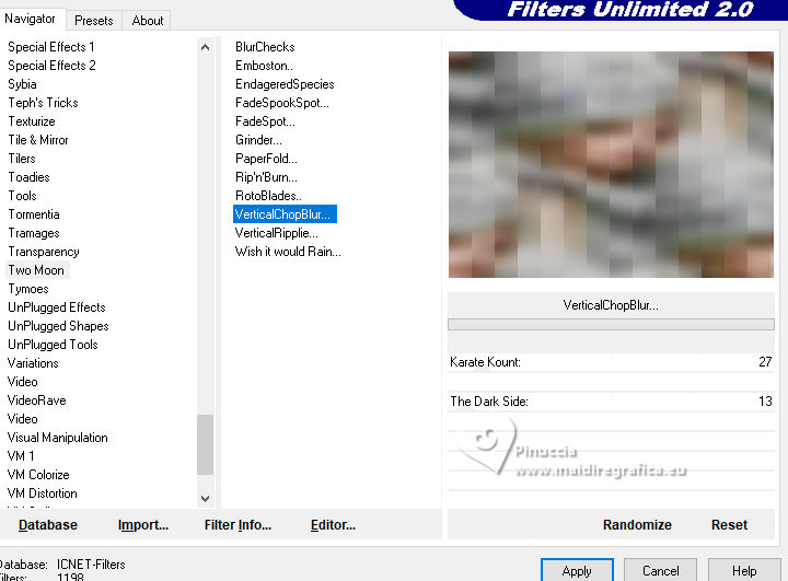 4. Effects>Plugins>Filters Unlimited 2.0 - Two Moon - VerticalChopBlur