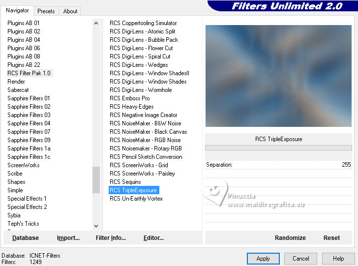 6. Effects>Plugins>Filters Unlimited 2.0 - RCS Filter Pak 1.0 - RCS TripleExposure, default settings.