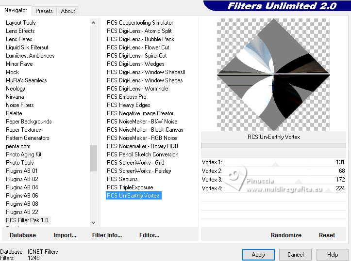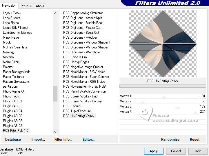 16. Effects>Plugins>Filters Unlimited 2.0 - RCS Filter Pak 1 - RCS Un-Earthly Vortex