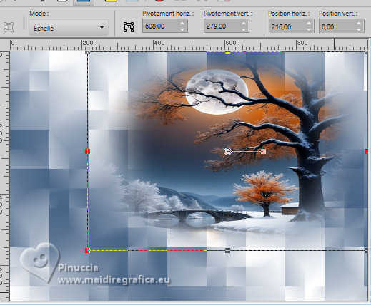 Image>Redimensionner, à 50%, redimensionner tous les calques décoché (vous pouvez changer à votre goût)
