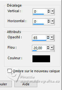 Effets>Effets 3D>Ombre portée, avec les réglages utilisés pour le tube.