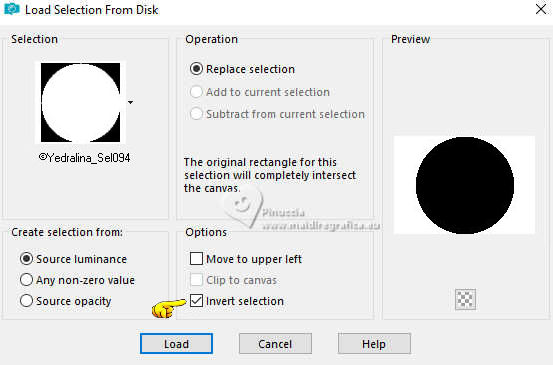 8. Selections>Load/Save Selection>Load Selection from Disk.