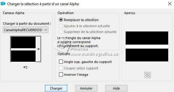mais contient les sélections enregistrées sur le canal alpha.