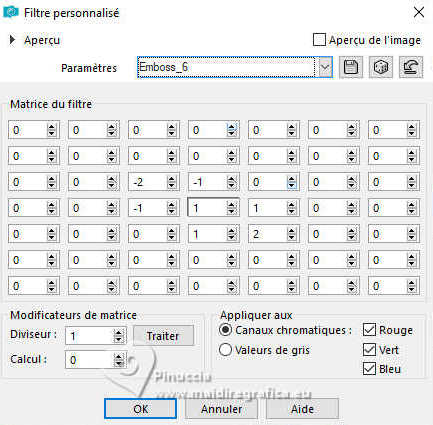 7. Effets>Filtre personnalisé - sélectionner le preset Emboss 6 et ok.