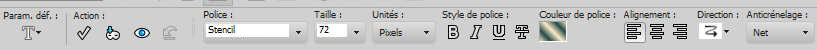 Font Stencil, taille 72 - couleur d'arrière plan: dégradé avec les couleur 2 et 3