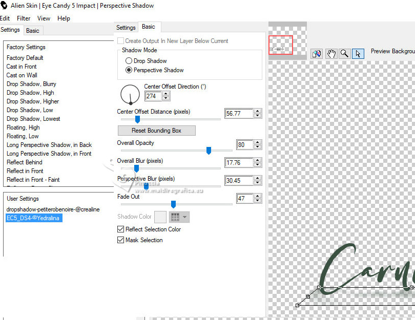 Effects>Plugins>Alien Skin Eye Candy 5 Impact - Perspective Shadow,