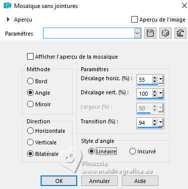 Effets>Effets d'image>Mosaïque sans jointures, par défaut.