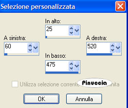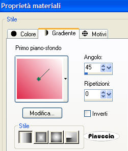 qui puoi trovare qualche risposta ai tuoi dubbi. Se l'argomento che ti interessa non è presente, ti prego di segnalarmelo. Occorrente: Materiale: qui Metti i pennelli nella cartella dei pennelli. Imposta il colore di primo piano con un colore preso dal tube (io ho scelto #df2a4b). Apri una nuova immagine BIANCA 700x500 pixels, Livelli>Nuovo livello raster. Attiva lo strumento Selezione , selezione personalizzata ![]() con i seguenti settaggi: ![]() Riempi la selezione con il colore che hai scelto.Selezione>Modifica>Contrai, di 3 pixels. Riempi la selezione con il nero #000000.Selezione>Modifica>Contrai, di 3 pixels. Premi sulla tastiera il tasto CANC. Imposta il colore di primo piano con il colore scelto da tube, e il colore di sfondo con il bianco (#ffffff). Passa il colore di primo piano a Gradiente di primo piano/sfondo, con i seguenti settaggi: ![]() Riempi la selezione con il gradiente.Mantieni selezionato. Apri il tube BrunetteByTragedy e vai a Modifica>Copia. Torna al tuo lavoro e vai a Modifica>Incolla>Incolla come nuovo livello. Selezione>Nessuna selezione. Apri il tube del cuore BarbedwireHeart e vai a Modifica>Copia. Torna al tuo lavoro e vai a Modifica>Incolla>Incolla come nuovo livello. Spostalo in basso a destra.(vedi l'esempio della tag finale). Apri il file della cornice "Frame" e vai a Modifica>Copia. Torna al tuo lavoro e vai a Modifica>Incolla>Incolla come nuovo livello. Spostala in alto a destra.Livelli>Duplica. Sposta la seconda cornice un po' più in basso sulla destra.In queste cornici, più tardi, in Animation Shop, le piccole animazioni. Se vuoi usare altre immagini, segui i passaggi usati per la cornice più grande. Attiva il livello di sfondo bianco. Imposta nuovamente il colore di primo piano sul colore che hai scelto all'inizio del tutorial. Attiva lo strumento Pennello ![]() cerca e seleziona il pennello a-dozi's background 10-005 e applicalo casualmente diverse volte sullo sfondo. Cerca ora il pennello @Anima barbedheart, e imposta la rotazione a 270 ,e applicalo sulla sinistra. Attiva lo strumento Testo e scegli un bel font.Io ho usato Dream Orphans (la dimensione dipende dal tuo nome e dalla versione di PSP che stai usando). Aggiungi il tuo nome. Livelli>Unisci>Unisci tutto. Modifica>Copia. Apri Animation Shop. Clicca con il tasto destro del mouse sullo spazio vuoto e Incolla come nuova animazione. Le animazioni che dovrai aggiungere hanno 27 fotogrammi e una velocità di 18/100 sec. Pertanto, anche il tuo lavoro dovrà avere le stesse proprietà prima di essere unito alle animazioni. Clicca sull'immagine e vai a Modifica>Duplica e ripeti finchè non avrai ottenuto i 27 fotogrammi. Clicca sul primo fotogramma per selezionarlo e vai a Modifica>Seleziona tutto. Animazione>Proprietà fotogramma e imposta la velocità a 18. ![]() Apri la prima animazione contenuta nello zip. Clicca sul primo fotogramma per selezionarlo e vai a Modifica>Seleziona tutto e poi Modifica>Copia. Attiva il tuo lavoro e vai a Modifica>Incolla>Incolla nel fotogramma selezionato. Posiziona l'animazione in una delle cornici, e quando sei certo che questa sia esattamente al centro, rilascia il tasto del mouse. ![]() Se ti accorgi che l'animazione si è spostata e non sei soddisfatto della posizione, puoi fare Modifica>Annulla incolla e ripetere l'operazione. Fai lo stesso con la seconda animazione. Salva in formato gif. ![]() Se hai problemi o dubbi, o trovi un link non funzionante, o anche soltanto per un saluto, scrivimi. Gennaio 2007 |