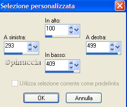 qui puoi trovare qualche risposta ai tuoi dubbi. Se l'argomento che ti interessa non è presente, ti prego di segnalarmelo. Questo tutorial è stato creato in PSP 9, ma può essere essere anche con PSP X. Occorrente: Filtri: VM Natural qui Materiale: qui 1. Imposta il colore di primo piano su #a3b2cb e il colore di sfondo con #faf8f4. Passa il colore di primo piano a gradiente di primo piano/sfondo, stile lineare, con i seguenti settaggi: ![]() Apri una nuova immagine trasparente 550 x 500 pixels e riempila con questo gradiente.Regola>Sfocatura>Sfocatura gaussiana, raggio 20. ![]() Immagine>Cornice immagine. Cerca la cornice Rand uitsmeren01. ![]() Sulle cornici immagini vedi qui Effetti>Effetti di Trama>Intessitura, con i seguenti settaggi, con il colore blu (a3d2cb). ![]() 2. Livelli>Nuovo livello raster. Apri il tube Gerdavrouw68 e vai a Modifica>Copia. Torna al tuo lavoro. Attiva lo strumento Selezione , rettangolo,selezione personalizzata :![]() Modifica>Incolla>Incolla nella selezione. Selezione>Nessuna selezione. 3. Livelli>nuovo livello raster. Selezione>Carica/Salva selezione>Carica selezione da disco. Cerca e carica la selezione GerdaS92: ![]() Riempi la selezione con il colore chiaro (faf8f4).Selezione>Nessuna selezione. Effetti>Effetti di distorsione>Onda, con i seguenti settaggi: ![]() Se la parte finale delle strisce non ti soddisfa, con lo strumento Deformazione ![]() trascinala fuori dai bordi dell'immagine. Effetti>Effetti 3D>Sfalsa ombra, con i seguenti settaggi, colore #3b4a61. ![]() 4. Livelli>nuovo livello raster. Selezione>Carica/Salva selezione>Carica selezione da disco. Cerca e carica la selezione GerdaS93. ![]() Riempi la selezione con il colore blu (a3b2cb).Selezione>Nessuna selezione. Effetti>Effetti di trama>Trama: cerca e seleziona la trama "korrel land diep": ![]() Imposta il colore di primo piano con il colore chiaro (faf8f4). Livelli>Nuovo livello raster. Attiva lo strumento penna ![]() e cerca la linea di stile gerdalijn1, dimensione 3: (per aprire il menu a tendina, clicca sul triangolino indicato dalla manina rossa). ![]() Traccia una riga orizzontale in mezzo alla striscia blu. Perchè ti riesca diritta, tieni premuto il tasto shift. Effetti>Effetti 3D>Sfalsa ombra, con i seguenti settaggi, colore #3b4a61. ![]() Ripeti l'Effetto Sfalsa ombra, ma cambiando verticale e orizzontale a -1. Livelli>Duplica. Sposta la seconda riga nella striscia sotto.Livelli>Unisci>Unisci tutto. 5. Apri il tube Gerdavrouw67 e vai a Modifica>Copia. Torna al tuo lavoro e vai a Modifica>Incolla>Incolla come nuovo livello. Spostalo a sinistra.Posizionati sul livello inferiore. Apri il tube Gerdaeffect7 e vai a Modifica>Copia. Torna al tuo lavoro e vai a Modifica>Incolla>Incolla come nuovo livello. Spostalo in alto, come si vede nell'esempio.![]() Immagine>Aggiungi bordatura, simmetriche deselezionato, con le seguenti impostazioni (qualsiasi colore): ![]() Seleziona i bordi destro e sinistro con la bacchetta magica ![]() e riempili con il colore blu (3ab2cb).Effetti>Effetti di trama>Trama, con la trama impostata in precedenza. ![]() Selezione>Nessuna selezione. Apri il tube hs-element e vai a Modifica>Copia. Torna al tuo lavoro e vai a Modifica>Incolla>Incolla come nuovo livello. Spostalo a sinistra e posizionalo come si vede nell'esempio.![]() Livelli>Duplica. Immagine>Rifletti. Apri il tube Women needs1 e vai a Modifica>Copia. Torna al tuo lavoro e vai a Modifica>Incolla>Incolla come nuovo livello. Spostalo in basso come si vede nell'esempio finale.Imposta il colore di sfondo sul gradiente. Attiva lo strumento Testo ![]() Scegli un bel font (io ho scelto PassionsConflictROB) e scrivi il tuo nome. Effetti>Effetti 3D>Sfalsa ombra, con i seguenti settaggi, colore nero: ![]() Livelli>Unisci>Unisci tutto. Immagine>Aggiungi bordatura, 2 pixels, simmetriche, con il colore bianco. 7. (Animazione) Attiva lo strumento Lasso ,punto a punto, e seleziona l'orologio ![]() Effetti>Plugins>VM Natural / Sparkles, imposta max size 25, il resto lascia come sta. ![]() Selezione>Nessuna selezione. Apri Animation Shop. Modifica>Incolla>Incolla come nuova animazione. Ritorna in PSP e annulla le due precedenti azioni: Modifica>Annulla Azione Nessuna selezione. Modifica>Annulla Azione Sparkle. Effetti>Plugins>VM Natural /Sparkles: imposta il random seed a 120 e lascia il resto come sta. ![]() Selezione>Nessuna selezione. Modifica>Copia. Passa in Animation Shop e vai a Modifica>Incolla>Incolla dopo il fotogramma selezionato. Ancora in PSP, annulla le precedenti azioni: Modifica>Annulla Azione Nessuna selezione. Modifica>Annulla Azione Sparkle. Effetti>Plugins>VM Natural /Sparkles: imposta il random seed a 30 e lascia il resto come sta. Modifica>Copia. Ritorna in Animation Shop e vai a Modifica>Incolla>Incolla dopo il fotogramma corrente. Posizionati sul primo fotogramma per selezionarlo. Modifica>Seleziona tutto. Modifica>Proprietà fotogramma e imposta la velocità a 18. ![]()