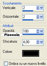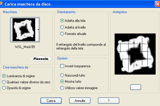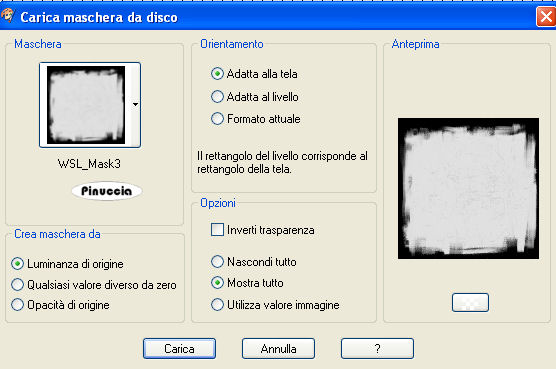 qui puoi trovare qualche risposta ai tuoi dubbi. Se l'argomento che ti interessa non è presente, ti prego di segnalarmelo. Questo tutorial è stato scritto in PSP X2, ma può essere eseguito anche con le altre versioni di PSP. Per tradurlo, l'ho eseguito con PSP X. Occorrente: Un tube a scelta. Il resto del materiale qui Le maschere sono di Weescotslass . Il tube che ho usato è di Didier. Metti le Maschere nella cartella maschere. 1. Apri una nuova immagine bianca 600 x 600 pixels. 2. Apri Paper05 e vai a Modifica>Copia. Torna alla tua immagine bianca e vai a Modifica>Incolla come nuovo livello. 3. Livelli>Carica/Salva maschera>Carica maschera da disco. Cerca e carica la maschera zoek WSL_Mask3: ![]() Livelli>Elimina e rispondi sì alla domanda unire la maschera nel livello corrente: ![]() Livelli>Unisci>Unisci gruppo. 4. Apri Paper 12 e vai a Modifica>Copia. Torna al tuo lavoro e vai a Modifica>Incolla come nuovo livello. 5. Livelli>Carica/Salva maschera>Carica maschera da disco. Cerca e carica la maschera zoek WSL_Mask99: ![]() Livelli>Elimina e rispondi sì alla domanda unire la maschera nel livello corrente: Livelli>Unisci>Unisci gruppo. 6. Apri il tuo tube. 7. Regola>Tonalità e saturazione>Viraggio: ![]() 8. Modifica>Copia. Torna al tuo lavoro e vai a Modifica>Incolla come nuovo livello. 9. Apri Frame08 e vai a Modifica>Copia. Torna al tuo lavoro e vai a Modifica>Incolla come nuovo livello. Posiziona la cornice sul tube.10. Attiva il livello Raster 2. 11. Attiva lo strumento Gomma ![]() e cancella la parte la parte di cornice che copre il tube in alto. ![]() 12. Apri Bow08 e vai a Modifica>Copia. Torna al tuo lavoro e vai a Modifica>Incolla come nuovo livello. Sposta il nastro a sinistra.13. Apri LoveCharm04 e vai a Modifica>Copia. Torna al tuo lavoro e vai a Modifica>Incolla come nuovo livello. Posizionalo sul nastro.14. Apri Butterfly04 e vai a Modifica>Copia. Torna al tuo lavoro e vai a Modifica>Incolla come nuovo livello. Sposta la farfalla in alto a sinistra.15. Apri Heart04 e vai a Modifica>Copia. Torna al tuo lavoro e vai a Modifica>Incolla come nuovo livello. Sposta il cuore in basso a destra.16. Livelli>Duplica. 17. Immagine>Ridimensiona, al 70%, tutti i livelli non selezionato. Sposta questo duplicato in basso.18. Apri Rose02 e vai a Modifica>Copia. Torna al tuo lavoro e vai a Modifica>Incolla come nuovo livello. Immagine>Ruota per gradi - 90 gradi a destra: ![]() Sposta la rosa in basso.19. Effetti>Effetti 3D>Sfalsa ombra: ![]() 20. Aggiungi il tuo nome e/o il tuo watermark. 21. Livelli>Unisci>Unisci tutto e salva in formato jpg. ![]() Se hai problemi o dubbi, o trovi un link non funzionante, o anche soltanto per un saluto, scrivimi 1 Ottobre 2008 |