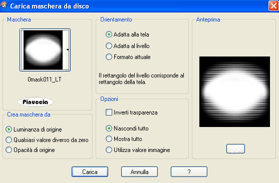 qui puoi trovare qualche risposta ai tuoi dubbi. Se l'argomento che ti interessa non è presente, ti prego di segnalarmelo. Questo tutorial è stato scritto in PSP X2, ma può essere eseguito anche con le altre versioni di PSP. Per tradurlo, l'ho eseguito con PSP X. Occorrente: Un tube a scelta. Il resto del materiale qui I tubes che ho usato sono di Terry. Lo scrapset è di Scrappy Expression . Metti la Maschera nella cartella Maschere. Apri il font Amaze e minimizzalo nella tua area di lavoro. Lo troverai nella lista dei font disponibili, quando ti servirà. Imposta il colore di primo piano con #9d2429, e il colore di sfondo con il nero (#000000). 1. Apri una nuova immagine BIANCA 600 x 600 pixels. 2. Livelli>Nuovo livello raster. Riempi questo livello con il colore di primo piano.3. Livelli>Carica/Salva maschera>Carica maschera da disco. Cerca e carica la maschera 0mask011_LT: ![]() Livelli>Elimina, e rispondi sì alla domanda unire la maschera nel livello corrente. ![]() Livelli>Unisci>Unisci gruppo. 4. Livelli>Nuovo livello raster. 5. Attiva lo strumento Selezione , selezione personalizzata:![]() con i seguenti settaggi: ![]() 6. Riempi la selezione con il colore di sfondo.ricorda che, per riempire con il colore di sfondo, devi cliccare con il tasto destro del mouse. 7. Selezione>Modifica>Contrai, di 2 pixels. Premi sulla tastiera il tasto CANC ![]() 8. Riempi la selezione con il colore di primo piano.9. Effetti>Effetti di trama>Intessitura: colore intessitura colore di primo piano; colore spazio nero: ![]() 10. Selezione>Deseleziona. 11. Livelli>Duplica. 12. Immagine>Rifletti. 13. Livelli>Unisci>Unisci giù. 14. Nella paletta dei livelli attiva il livello Gruppo-Raster 1 (il livello della maschera). 15. Apri SE_Love_Doodles. Attiva lo strumento Selezione , rettangolo,e seleziona lo scarabocchio a destra. ![]() 16. Modifica>Copia. Torna al tuo lavoro e vai a Modifica>Incolla come nuovo livello. Spostalo in alto a destra.17. Attiva nuovamente SE_Love_Doodles. Selezione>Deseleziona, e seleziona lo scarabocchio a sinistra.![]() Modifica>Copia. Torna al tuo lavoro e vai a Modifica>Incolla come nuovo livello. Spostalo in basso a destra.18. Apri il tube V-ValentineAccentsSparklies, e vai a Modifica>Copia. 19. Torna al tuo lavoro e vai a Modifica>Incolla come nuovo livello. Sposta il tube in alto (vedi il mio esempio).20. Livelli>Unisci>Unisci tutto. 21. Apri SE_Love_Bow, e vai a Modifica>Copia. 22. Torna al tuo lavoro e vai a Modifica>Incolla come nuovo livello. Sposta il fiocco in alto a destra.23. Livelli>Duplica. 24. Immagine>Rifletti. 25. Livelli>Unisci>Unisci giù. 26. Apri il tube Rosenrosa 088. 27. Regola>Saturazione e tonalità>Viraggio: ![]() 28. Modifica>Copia. Torna al tuo lavoro e vai a Modifica>Incolla come nuovo livello. Sposta il tube in basso a sinistra.29. Livelli>Duplica. 30. Immagine>Rifletti. 31. Livelli>Unisci>Unisci giù. 32. Effetti>Effetti 3D>Sfalsa ombra: ![]() 33. Apri il tuo tube, e vai a Modifica>Copia. 34. Torna al tuo lavoro e vai a Modifica>Incolla come nuovo livello. 35. Effetti>Effetti 3D>sfalsa ombra: ![]() 36. Chiudi il colore di primo piano. 37. Attiva lo strumento Testo , font Amaze:![]() Scrivi "Come on..." e usi i nodi vettori del testo per ruotarlo leggermente. Livelli>Converti in livello raster. 38. Livelli>Unisci>Unisci tutto. 39. Aggiungi il tuo nome al lavoro e salva in formato jpg. ![]() ![]() Se hai problemi o dubbi, o trovi un link non funzionante, o anche soltanto per un saluto, scrivimi 2 Febbraio 2008 |