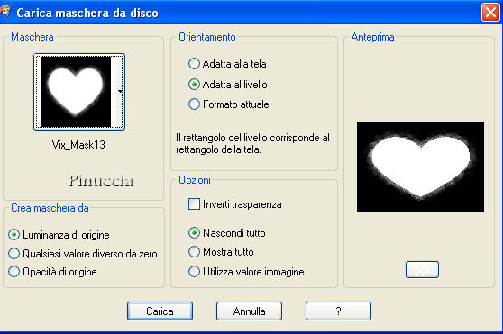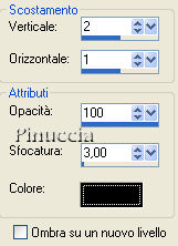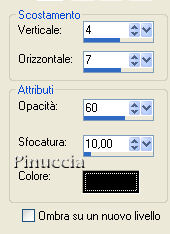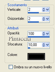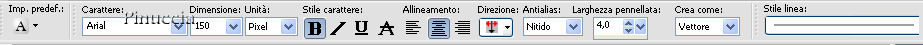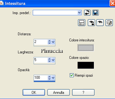 qui puoi trovare qualche risposta ai tuoi dubbi. Se l'argomento che ti interessa non è presente, ti prego di segnalarmelo. Questo tutorial è stato scritto in PSP X2, ma può essere eseguito anche con le altre versioni di PSP. Per tradurlo, l'ho eseguito con PSP X. Occorrente: Un tube a scelta. I tubes che ho usato sono di Lamanouche e Sandra . Il resto del materiale qui Metti la maschera nella cartella Maschere. La maschera è di Vix Imposta il colore di primo piano con #c0c0c0, e il colore di sfondo con il nero. 1. Apri una nuova immagine BIANCA 700 x 500 pixels. 2. Livelli>Nuovo livello raster. Riempi con il colore di primo piano.3. Livelli>Carica/Salva maschera>Carica maschera da disco. Cerca e carica la maschera Vix_Mask13: ![]() Livelli>Elimina, e rispondi sì alla domanda Unire la maschera nel livello corrente. ![]() Livelli>Unisci>Unisci gruppo. 4. Effetti>Effetti di trama>Intessitura: colore intessitura #c0c0c0, colore spazio nero: ![]() 5. Apri ORB_pascoa_lacinho 02. 6. Regola>Saturazione e tonalità>Viraggio: ![]() 7. Modifica>copia. Torna al tuo lavoro e vai a Modifica>Incolla come nuovo livello. 8. Attiva lo strumento Testo ,seleziona il font Arial (standard in Windows), con i seguenti settaggi: ![]() Scrivi "Donne", e sposta il testo in basso. 9. Livelli>Converti in livello raster. 10. Effetti>Effetti 3D>Sfalsa ombra: ![]() 11. Nella paletta dei livelli attiva il livello Raster 1. 12. Apri 58_BrookesSwags_BDK2006 13. Regola>Saturazione e tonalità>Viraggio, con i settaggi precedenti. 14. Modifica>copia. Torna al tuo lavoro e vai a Modifica>Incolla come nuovo livello. Sposta i fiori sotto le lettere.15. Attiva lo strumento Gomma ,e cancella i fiori in basso che non devono toccare il bordo. ![]() 16. Effetti>Effetti 3D>Sfalsa ombra: ![]() 17. Livelli>Nuovo livello raster. 18. Attiva lo strumento Pennello ![]() cerca e seleziona il pennello lyndiebrush 122 003, e applicalo con il colore di sfondo (quindi cliccando con il tasto destro del mouse), sotto il testo. 19. Nella paletta dei livelli attiva il livello Raster 2. 20. Apri il tuo tube. Regola>Saturazione e tonalità>Viraggio, con i settaggi precedenti. 21. Modifica>copia. Torna al tuo lavoro e vai a Modifica>Incolla come nuovo livello. Sposta il tube sul testo.la posizione dell'immagine, tuttavia, dipende dal tube che hai deciso di usare. Se non è adeguato ad essere posizionato sopra le lettere, sistemalo nel modo migliore. 22. Effetti>Effetti 3D>Sfalsa ombra: ![]() 23. Apri il tube corazon. 24. Regola>Saturazione e tonalità>Viraggio, con i settaggi precedenti. 25. Modifica>Copia. Torna al tuo lavoro e vai a Modifica>Incolla come nuovo livello. Sposta il tube a destra.26. Effetti>Effetti 3D>Sfalsa ombra: ![]() 27. Apri il tube hartjestube e vai a Modifica>Copia. Torna al tuo lavoro e vai a Modifica>Incolla come nuovo livello. Sposta il tube in alto.28. Immagine>Aggiungi bordatura, 1 pixel, simmetriche, con il colore nero. Immagine>Aggiungi bordatura, 30 pixels, simmetriche, con il colore bianco. Immagine>Aggiungi bordatura, 1 pixel, simmetriche, con il colore nero. Firma il tuo lavoro e salva in formato jpg. ![]() ![]() Se hai problemi o dubbi, o trovi un link non funzionante, o anche soltanto per un saluto, scrivimi 17 Dicembre 2007 |