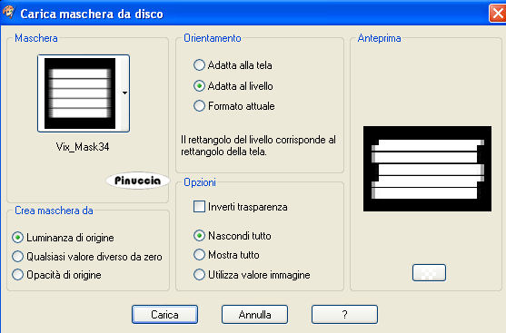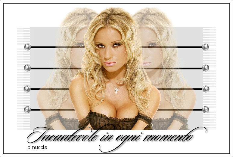 qui puoi trovare qualche risposta ai tuoi dubbi. Se l'argomento che ti interessa non è presente, ti prego di segnalarmelo. Questo tutorial è stato scritto in PSP X2, ma può essere eseguito anche con le altre versioni di PSP. Per tradurlo, l'ho eseguito con PSP X. Occorrente: Un tube a scelta. Il resto del materiale qui La maschera è di Vix Il tube che ho usato per il mio esempio è di TsGina qui Metti la maschera nella cartella Maschere. Apri il font Sloop Script Three e minimizzalo. Lo troverai nella lista dei font disponibili, quando ti servirà. Imposta il colore di primo piano con il nero. Imposta il colore di sfondo con #e1e1e1. 1. Apri una nuova immagine BIANCA 750 x 500 pixels. 2. Livelli>Nuovo livello raster. Riempi questo livello con il colore di sfondo.ricorda che, per riempire con il colore di sfondo, devi cliccare con il tasto destro del mouse 3. Livelli>Carica/Salva maschera>Carica maschera da disco. Cerca e carica la maschera Vix_Mask 34. ![]() Livelli>Elimina, e rispondi sì alla domanda Unire la maschera nel livello corrente. ![]() Livelli>Unisci>Unisci gruppo. 4. Apri il tuo tube e vai a Modifica>Copia. Torna al tuo lavoro e vai a Modifica>Incolla come nuovo livello. Sposta il tube al centro.5. Attiva lo strumento Selezione , rettangolo,e seleziona la parte di tube che esce dalla maschera: ![]() Premi sulla tastiera il tasto CANC ![]() 6. Selezione>Deseleziona. 7. Livelli>Duplica. Sposta il duplicato un po' più a destra.Livelli>Disponi>Sposta giù. Abbassa l'opacità di questo livello al 47%. 8. Livelli>duplica. Immagine>Rifletti. 9. Attiva il livello Gruppo-Raster 1. 10. Attiva lo strumento Penna , con i seguenti settaggi:![]() traccia con il colore di primo piano delle linee nelle sezioni vuote della maschera. ![]() 11. Nella paletta dei livelli attiva il livello Raster 1. 12. Apri Nipple e vai a Modifica>Copia. Torna al tuo lavoro e vai a Modifica>Incolla come nuovo livello. Sposta il tube a destra, alla fine delle linee:![]() 13. Livelli>Duplica. Immagine>Rifletti. ![]() 14. Inverti i colori di primo piano e sfondo, cliccando sulla freccia al centro delle palette: ![]() e chiudi il colore di primo piano. ![]() 15. Attiva lo strumento Testo ,seleziona il font Sloop Script Three con i seguenti settaggi: ![]() Scrivi "glamorous in every time" o quello che preferisci. 16. Livelli>converti in livello raster. 17. Effetti>Effetti 3D>Sfalsa ombra, con i seguenti settaggi: ![]() 25. Livelli>Unisci>Unisci tutto. 26. Immagine>Aggiungi bordatura, 1 pixel, simmetriche, con il colore nero. Immagine>Aggiungi bordatura, 10 pixels, simmetriche, con il colore bianco. Immagine>Aggiungi bordatura, 1 pixel, simmetriche, con il colore nero. 25. Aggiungi il tuo nome e/o il tuo watermark. 26. Livelli>Unisci>Unisci tutto e salva in formato jpg. ![]() I tubes usati per questo esempio sono di MTM(Brigitte) e TsGina. ![]() ![]() ![]() Se hai problemi o dubbi, o trovi un link non funzionante, o anche soltanto per un saluto, scrivimi 2 Marzo 2008 |