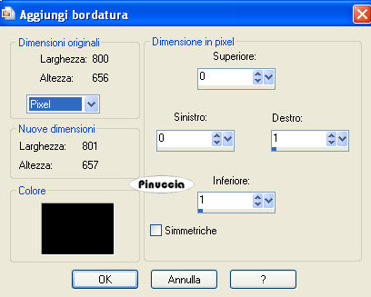 Immagine>Aggiungi bordatura, 1 pixel, simmetriche non selezionato, con i seguenti settaggi: