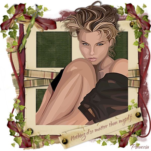 qui puoi trovare qualche risposta ai tuoi dubbi. Se l'argomento che ti interessa non è presente, ti prego di segnalarmelo. Questo tutorial è stato scritto in PSP X2, ma può essere eseguito anche con le altre versioni di PSP. Per tradurlo, l'ho eseguito con PSP X. Occorrente: Un tube a scelta. Il resto del materiale qui Metti le maschere nella cartella Maschere. Apri il font Qzigley e minimizzalo. Lo troverai nella lista dei font disponibili, quando ti servirà. Il materiale scrap è di Jo's Dzign's. I tubes che ho usato sono di Yoka e Angie. Imposta il colore di primo piano con #e3d4b3, e il colore di sfondo con #732d2f. 1. Apri una nuova immagine bianca 600 x 600 pixels. 2. Apri PLAID PAPER, e vai a Modifica>Copia. Torna al tuo lavoro e vai a Modifica>Incolla come nuovo livello. 3. Livelli>Carica/Salva maschera>Carica maschera da disco. Cerca e carica la maschera Becky_Mask040: ![]() Livelli>Elimina e rispondi sì alla domanda Unire la maschera nel livello corrente: ![]() Livelli>Unisci>Unisci gruppo. 4. Immagine>Ruota per gradi - 10 gradi a sinistra: ![]() Spostala a sinistra.5. Livelli>Nuovo livello raster. 6. Selezione>Seleziona tutto. 7. Apri BRGNDY PAPER, e vai a Modifica>Copia. Torna al tuo lavoro e vai a Modifica>Incolla nella selezione. 8. Livelli>Carica/Salva maschera>Carica maschera da disco. Cerca e carica la maschera candyassMask Tornpaper: ![]() Livelli>Elimina e rispondi sì alla domanda Unire la maschera nel livello corrente: Livelli>Unisci>Unisci gruppo. Spostala a destra.9. Selezione>Deseleziona. 10. Apri GREEN PAPER, e via a Modifica>copia. Torna al tuo lavoro e vai a Modifica>Incolla come nuovo livello. 11. Apri FRAME, e vai a Modifica>Copia. Torna al tuo lavoro e vai a Modifica>Incolla come nuovolivello. Sposta la cornice un po' più in alto.12. Nella paletta dei livelli attiva il livello Raster 1. 13. Attiva lo strumento Gomma e cancella la Green Paper all'esterno della cornice.14. Attiva lo strumento Pennello ![]() Cerca e seleziona il pennello Brush flowers and butterfly's, e applicalo con il colore di primo piano sulle sezioni verdi. 15. Attiva nuovamente il livello raster 1. 16. Apri Corners e vai a Modifica>copia. Torna al tuo lavoro e vai a Modifica>Incolla come nuovo livello. 17. Livelli>Duplica. 18. Immagine>Rifletti. Nella paletta dei livelli sposta questo livello sotto il livello Raster 2. 19. Nella paletta dei livelli attiva il livello Gruppo-Raster 1 (la carta plaid). 20. Apri BRGNDY RIBBON, e vai a Modifica>Copia. Torna al tuo lavoro e vai a Modifica>Incolla come nuovo livello. 21. Immagine>Ruota per gradi - 90 gradi a sinistra: ![]() Sposta il nastro a sinistra.22. Livelli>Duplica. 23. Immagine>Rifletti, e sposta il nastro a destra.24. Livelli>Unisci>Unisci giù. 25. Attiva lo strumento Gomma e cancella la parte superflua dei nastri.![]() 26. Apri Accent, e vai a Modifica>copia. Torna al tuo lavoro e vai a Modifica>Incolla come nuovolivello. 27. Nella paletta dei livelli chiudi i livelli delle carte, in modo da poter posizionare più comodamente il file. Sposta il tube a destra.28. Livelli>Duplica. Immagine>Rifletti. 29. Riapri i livelli chiusi. 30. Apri il tuo tube e vai a Modifica>Copia. Torna al tuo lavoro e vai a Modifica>Incolla come nuovo livello. 31. Effetti>Effetti 3D>Sfalsa ombra, con i seguenti settaggi, colore nero: ![]() 32. Apri XTRA TAG PIECE, e vai a Modifica>copia. Torna al tuo lavoro e vai a Modifica>Incolla come nuovo livello. 33. Effetti>Effetti 3D>Sfalsa ombra, con i settaggi precedenti. 34. Attiva lo strumento Testo , font Qwigley, colore di primo piano chiuso,scrivi "Nothing else matters than myself". 35. Livelli>Converti in livello raster. Posiziona il testo sulla targa.Livelli>Unisci>Unisci giù, e posizionalo come nel mio esempio.36. Aggiungi il tuo nome e/o il tuo watermark. 37. Livelli>Unisci>Unisci tutto e salva in formato jpg. ![]() ![]() Se hai problemi o dubbi, o trovi un link non funzionante, o anche soltanto per un saluto, scrivimi 2 Giugno 2008 |