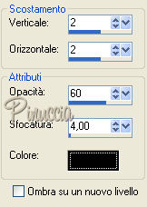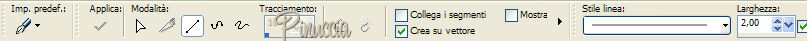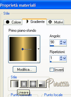 qui puoi trovare qualche risposta ai tuoi dubbi. Se l'argomento che ti interessa non è presente, ti prego di segnalarmelo. Materiale qui Metti il pennello nella cartella dei pennelli e la maschera nella cartella delle maschere. Imposta il colore di primo piano con il nero, e il colore di sfondo con #f0ca68. 1. Apri una nuova immagine NERA 650 x 500 pixels. 2. Livelli>Nuovo livello raster. Riempi con il colore di sfondo.per riempire con il colore di sfondo devi cliccare con il tasto destro del mouse. 3. Livelli>Carica/Salva maschera>Carica maschera da disco. Cerca e carica la maschera Nr 7. ![]() Livelli>Elimina, e rispondi sì alla domanda Unire la maschera nel livello corrente?. ![]() Livelli>Unisci>Unisci gruppo. 4. Apri il tube ero9. Nella paletta dei livelli attiva il livello Raster 1. Modifica>Copia. Torna al tuo lavoro e vai a Modifica>Incolla>Incolla come nuovo livello. Sposta il tube sul lato destro.5. Visualizza>Righelli. 6. Attiva lo strumento Penna ![]() ![]() e traccia una linea di 50 pixels dall'alto e una a 50 pixels dal basso. tenendo premuto il tasto della maiuscola, la riga sarà perfettamente diritta. ![]() 7. Livelli>Converti in livello raster. 8. Attiva lo strumento Pennello ![]() cerca e seleziona il pennello gerdablok 9 e applicalo con il colore nero sulla destra della tag. 9. Imposta il colore di primo piano a Gradiente di primo piano-sfondo, stile lineare: ![]() 10. Torna al tube ero9. Attiva lo strumento Selezione rettangolo,e traccia una selezione attorno al viso della donna. ![]() Modifica>Copia. Modifica>Incolla>Incolla come nuova IMMAGINE. 11. Livelli>Nuovo livello raster. Riempi con il gradiente.12. Livelli>Disponi>Sposta giù. 13. Livelli>Unisci>Unisci tutto. 14. Immagine>Aggiungi bordatura, 1 pixel, simmetriche, con il colore nero. 15. Immagine>Ridimensiona, al 90%, tutti i livelli selezionato. 16. Modifica>Copia. Torna al tuo lavoro e vai a Modifica>Incolla>Incolla come nuovo livello. Sposta l'immagine in alto a sinistra.17. Livelli>Duplica. Immagine>Rifletti. Sposta l'immagine riflessa in basso a sinistra.18. Livelli>Unisci>Unisci giù. 19. Effetti>Effetti 3D>Sfalsa ombra: ![]() Ripeti l'Effetto Sfalsa ombra, ma cambiando verticale e orizzontale a -2. 20. Apri il tube snakerand 5. Regola>Saturazione e tonalità>Viraggio: ![]() 21. Attiva lo strumento Selezione , rettangolo,e seleziona il terzo cordino. ![]() Modifica>Copia. Torna al tuo lavoro e vai a Modifica>Incolla>Incolla come nuovo livello. Sposta la corda a sinistra dell'immagine superiore.Livelli>Duplica. Immagine>Capovolgi. Sposta la seconda corda sull'immagine inferiore.22. Livelli>Unisci>Unisci tutto. 23. Immagine>Aggiungi bordatura, 50 pixels, simmetriche, con il colore di sfondo. 24. Selezione>Seleziona tutto. 25. Selezione>Modifica>Contrai, di 50 pixels. 26. Effetti>Effetti 3D>Sfalsa ombra: ![]() Ripeti l'Effetto Sfalsa ombra, ma cambiando verticale e orizzontale a -4. 27. Selezione>Nessuna selezione. 28. Regola>Correzione distorsione a barile. se stai usando PSP 9 lo trovi sotto Regola>Correzione fotografica>Correzione distorsione a barile. ![]() 29. Immagine>Aggiungi bordatura, 10 pixels, simmetriche, con il colore nero. 30. Imposta il colore di primo piano con il nero. Attiva lo strumento Penna ,e traccia una linea sui quattro angoli. vedi l'esempio nella schermata sotto. ![]() Livelli>Converti in livello raster. Livelli>Unisci>Unisci tutto. 31. Apri il tube "nv sewing pin gold", e vai a Modifica>Copia. Torna al tuo lavoro e vai a Modifica>Incolla>Incolla come nuovo livello. Sposta il tube sulle linea nell'angolo in alto a destra.![]() Livelli>Duplica. Immagine>Capovolgi. Livelli>duplica. Immagine>Rifletti. Livelli>Duplica. Immagine>Capovolgi. Adesso hai uno spillo in tutti gli angoli della tag. 32. Apri il tube Obsession-Vika, e vai a Modifica>Copia. Torna al tuo lavoro e vai a Modifica>Incolla>Incolla come nuovo livello. Sposta il testo come nel mio esempio.la traduzione del testo è "Ossessione in tacchi alti" 33. Livelli>Unisci>Unisci tutto. 34. Firma il tuo lavoro e salva in formato jpg. ![]() Se hai problemi o dubbi, o trovi un link non funzionante, o anche soltanto per un saluto, scrivimi 10 Settembre 2007 |