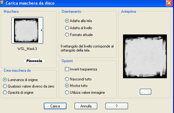 qui puoi trovare qualche risposta ai tuoi dubbi. Se l'argomento che ti interessa non è presente, ti prego di segnalarmelo. Questo tutorial è stato scritto in PSP X2, ma può essere eseguito anche con le altre versioni di PSP. Per tradurlo, l'ho eseguito con PSP X. Occorrente: Un tube a scelta. Il resto del materiale qui La maschera è di Weescotslass. La cornice è di Fran I tubes che ho usato per i miei esempi sono di Terry Metti la maschera nella cartella Maschere. Metti il pennello nella cartella Pennelli. Imposta il colore di primo piano con #fbce5d, e il colore di sfondo con #5e3919. 1. Apri una nuova immagine BIANCA 600 x 600 pixels. 2. Livelli>Nuovo livello raster. Riempi il livello con il colore di primo piano.3. Livelli>Carica/Salva maschera>Carica maschera da disco. Cerca e carica la maschera WSK_Mask3. ![]() Livelli>Elimina e rispondi sì alla domanda Unire la maschera nel livello corrente. ![]() Livelli>Unisci>Unisci gruppo. 4. Apri FR_Toutsimplement_frame 3, e vai a Modifica>Copia. Torna al tuo lavoro e vai a Modifica>Incolla come nuovo livello. Sposta la cornice in basso a sinistra.5. Effetti>Effetti 3D>Sfalsa ombra: ![]() 6. Livelli>Nuovo livello raster. 7. Attiva lo strumento Selezione , rettangolo,e traccia un rettangolo come nell'esempio. ![]() Riempi la selezione con il colore di primo piano.8. Selezione>Deseleziona. 9. Livelli>Disponi>Sposta giù. 10. Attiva il livello superiore. 11. Attiva lo strumento Pennello ![]() cerca e seleziona il pennello gerdablock9, e applicalo sul lato destro della finestra, cliccando con il tasto destro del mouse per usare il colore di sfondo. ![]() 12. Apri il tuo tube e vai a Modifica>copia. Torna al tuo lavoro e vai a Modifica>Incolla come nuovo livello. Spostalo a destra.13. Livelli>Duplica. 14. Immagine>Rifletti. 15. Livelli>Disponi>Sposta giù, 2 volte, in modo che si trovi sotto il livello della cornice. Abbassa l'opacità di questo livello al 34%. ![]() Sistema il tube nella cornice.Attiva lo strumento Selezione ![]() e seleziona il contorno della finestra. ![]() Selezione>inverti. Premi sulla tastiera il tasto canc. ![]() a seconda dei colori del tuo tube, puoi cambiare la modalità di miscelatura. Nell'esempio sotto il titolo, l'ho cambiata con Luminanza (esistente). 16. Attiva il livello superiore (Raster 4). 17. Effetti>Effetti 3D>Sfalsa ombra: ![]() 18. Apri SaftyPen, e vai a Modifica>Copia. Torna al tuo lavoro e vai a Modifica>Incolla come nuovo livello. Spostalo in alto a destra.19 Apri Stitches, e vai a Modifica>Copia. Torna al tuo lavoro e vai a Modifica>Incolla come nuovo livello. Spostalo in alto a sinistra.20. Apri Portfolio_tekst_Vika, e vai a Modifica>Copia. Torna al tuo lavoro e vai a Modifica>Incolla come nuovo livello. Posiziona il testo come preferisci, o vedi il mio esempio.21. Aggiungi il tuo nome e/o il tuo watermark. 22. Livelli>Unisci>Unisci tutto e salva in formato jpg. ![]() ![]() Se hai problemi o dubbi, o trovi un link non funzionante, o anche soltanto per un saluto, scrivimi. 18 Ottobre 2008 |
