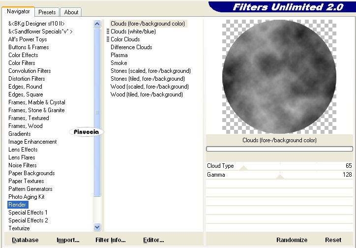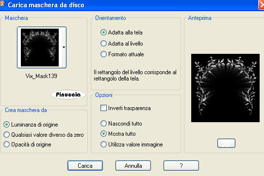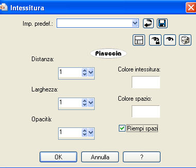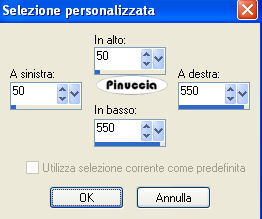 qui puoi trovare qualche risposta ai tuoi dubbi. Se l'argomento che ti interessa non è presente, ti prego di segnalarmelo. Questo tutorial è stato scritto in PSP X2, ma può essere eseguito anche con le altre versioni di PSP. Per tradurlo, l'ho eseguito con PSP X. Occorrente: Un tube a scelta. Il resto del materiale qui La cornice è di Fran; la maschera è di Vix. Filtro: Filters Unlimited qui Metti la maschera nella cartella Maschere. Apri il font Harrington e minimizzalo. Lo troverai nella lista dei font disponibili, quando ti servirà. Imposta il colore di primo piano con il nero, e il colore di sfondo con #c0c0c0. 1. Apri una nuova immagine bianca 600 x 600 pixels. 2. Livelli>Nuovo livello raster. 3. Attiva lo strumento Selezione ![]() clicca sull'icona Selezione personalizzata ![]() e imposta i seguenti settaggi: ![]() 4. Riempi la selezione con il colore nero.5. Selezione>Modifica>Contrai - 10 pixels. Premi sulla tastiera il tasto CANC ![]() 6. Selezione>Deseleziona. 7. Effetti>Effetti di trama>Intessitura: ![]() 8. Abbassa l'opacità di questo livello al 65%. 9. Livelli>Nuovo livello raster. 10. Riempi con il nero.11. Livelli>Carica/Salva maschera>Carica maschera da disco. Cerca e carica la maschera Vix_Mask139: ![]() Livelli>Elimina, e rispondi sì alla domanda Unire la maschera nel livello corrente: ![]() Livelli>Unisci>Unisci gruppo. 12. Livelli>Duplica. 13. Immagine>Capovolgi. 14. Apri FR_Frames2_F6, e vai a Modifica>Copia. Torna al tuo lavoro e vai a Modifica>Incolla come nuovo livello. 15. Attiva il livello copia di gruppo-Raster 2. 16. Livelli>Nuovo livello raster. 17. Attiva lo strumento Selezione a mano libera , da punto a punto:![]() traccia una selezione intorno al bordo della cornice esterna. 18. Passa il colore di primo piano a Gradiente: ![]() 19. Riempi la selezione con il gradiente.20. Effetti>Plugins>Filters Unlimited - Render - Clouds (fore-/background color): ![]() 21. Selezione>Deseleziona. Dovresti avere questo: ![]() 22. Attiva il tuo tube e vai a Modifica>copia. Torna al tuo lavoro e vai a Modifica>Incolla come nuovo livello. Sposta il tube a destra.23. Effetti>Effetti 3D>Sfalsa ombra: ![]() 24. Nella paletta dei livelli attiva il livello Raster 2. 25. Attiva lo strumento Gomma ![]() e cancella le parti della cornice sopra il tube. ![]() 26. Attiva il livello raster 4. 27. Livelli>Duplica. 28. Immagine>Rifletti. Sposta il tube a sinistra.29. Livelli>Disponi>Sposta giù. 30. Cambia la modalità di miscelatura di questo livello in Luminanza (esistente), e abbassa l'opacità al 20%. 31. Attiva lo strumento Gomma ![]() e cancella le parti del tube esterne alla cornice. 32. Livelli>Unisci>Unisci tutto. 33. Inverti i colori nella paletta dei materiali. 34. Attiva lo strumento Testo , font Harrington:![]() Scrivi "So Beautiful". 35. Livelli>Converti in livello raster. 36. Effetti>Effetti 3D>sfalsa ombra: ![]() 37. Aggiungi il tuo nome e/o il tuo watermark. 38. Livelli>Unisci>Unisci tutto e salva in formato jpg. ![]() ![]() Se hai problemi o dubbi, o trovi un link non funzionante, o anche soltanto per un saluto, scrivimi. 10 Giugno 2008 |