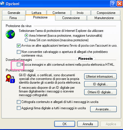 Per visualizzare le stationery in Outlook express, prima di tutto assicuratevi che le impostazioni della Protezione siano correttamente settate.
