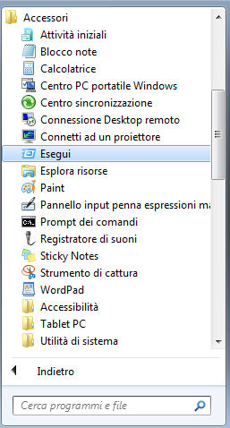 Cliccando su Accessori si aprirà la lista; qui seleziona Esegui...