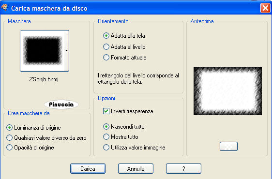 qui puoi trovare qualche risposta ai tuoi dubbi. Se l'argomento che ti interessa non è presente, ti prego di segnalarmelo. Occorrente: Materiale qui Metti la maschera nella cartella maschere e apri i tubes in PSP. Scegli un bel colore blu dal tube o dal template (io ho scelto #98b5ce). Apri una nuova immagine BIANCA 700 x 500 pixels. Livelli>Nuovo livello raster. Riempi il nuovo livello con il colore blu.Livelli>Carica/Salva maschera>Carica maschera da disco. Cerca e carica la maschera ZSonbj.bnmj, inverti trasparenza selezionato. ![]() Livelli>Unisci>Unisci gruppo. Apri il tube bluefloral-marie e vai a Modifica>Copia. Torna al tuo lavoro e vai a Modifica>Incolla>Incolla come nuovo livello. Attiva lo strumento Selezione , rettangolo,e seleziona i piccoli quadretti in basso e l'ultimo quadretto in alto a destra. ![]() ![]() Premi sulla tastiera il tasto canc ![]() Selezione>Nessuna selezione. Effetti>Effetti 3D>Sflalsa ombra, con i seguenti settaggi, colore nero. ![]() Apri il tube e vai a Modifica>Copia. Torna al tuo lavoro e vai a Modifica>Incolla>Incolla come nuovo livello. Spostalo in basso a sinistra.Apri il tube del nastrino (scraptube10) e vai a Modifica>Copia. Torna al tuo lavoro e vai a Modifica>Incolla>Incolla come nuovo livello. Spostalo in alto a destra, in modo che sembri infilato nel piccolo quadratino.![]() Effetti>Effetti 3D>Sfalsa ombra, con i settaggi precedenti. Livelli>Duplica. Immagine>Ruota>Ruota per gradi, 90 gradi a sinistra. ![]() Sposta il nastro in basso.Attiva lo strumento Gomma ![]() e cancella la parte di nastro, in modo da dare l'impressione che sia infilato nei buchetti. ![]() ![]() Apri il file con il testo Waiting e vai a Modifica>Copia. Torna al tuo lavoro e vai a Modifica>Incolla>Incolla come nuovo livello. Spostalo in alto a destra.Livelli>Unisci>Unisci tutto. Aggiungi il tuo nome (io ho usato University Roman, dimensione 48) e/o il tuo watermark. Salva in formato jpg. ![]() ![]() Se hai problemi o dubbi, o trovi un link non funzionante, o anche soltanto per un saluto, scrivimi. 13 Aprile 2007 |