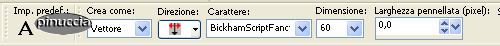 Attiva lo strumento Testo , font Bickham Fancy 2,