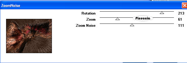 qui puoi trovare qualche risposta ai tuoi dubbi. Se l'argomento che ti interessa non è presente, ti prego di segnalarmelo. Occorrente: Materiale qui Il tube è di Thaiss. Metti i pennelli nella cartella dei pennelli. Se hai problemi con i pennelli, vedi alcuni appunti qui I tube usati in questo tutorial sono di Brigitte MTM. Uno dei pennelli è di Ms Kris Filtro: Filter Factory C qui I filtri Factory Gallery per essere usati devono essere convertiti. Come fare vedi qui Apri una nuova immagine trasparente 700 x 500 pixels. Riempi l'immagine trasparente con un colore scuro preso dal tube.Io ho usato #321e13. Apri il tube "surrealism small" e vai a Modifica>Copia. Torna al tuo lavoro e vai a Modifica>Incolla>Incolla come nuovo livello. Cambia la modalità di miscelatura di questo livello in Luminanza (Esistente), e abbassa l'opacità al 30%. Livelli>Nuovo livello raster. Attiva lo strumento Pennello ![]() cerca e seleziona il pennello wowretro-kris. Imposta il colore di primo piano con #6c151e, e applica il pennello in alto a sinistra, un po' scostato dal bordo, come mostrato nell'esempio sotto. ![]() Imposta la rotazione del pennello a 180 gradi, e applica il pennello nell'angolo in basso a destra, ma questa volta completamente appoggiato al bordo. ![]() Riporta la rotazione del pennello a 0. Cerca e seleziona il pennello wlj04squarenlines 001, e applicalo con un colore grigio chiaro (#9b9796), come mostrato nell'esempio sotto. ![]() Cerca e seleziona il pennello wlj092504thickline, e applicalo sempre con il colore grigio chiaro (#9b9796), due volte a sinistra uno sotto l'altro. ![]() Livelli>Nuovo livello raster. Cerca e seleziona il pennello Wildchild e applicalo in basso a sinistra, sempre con il colore #9b9796. Attiva il livello sotto (raster 3). Attiva lo strumento Gomma e cancella le tracce del pennello precedente.![]() ![]() Attiva ora il livello superiore. Apri il tube e vai a Modifica>Copia. Torna al tuo lavoro e vai a Modifica>Incolla>Incolla come nuovo livello. Immagine>Ridimensiona, all'85%, bicubica, tutti i livelli non selezionato. ![]() Se necessario, sposta un po' il tube.Effetti>Effetti 3D>Sfalsa ombra, con i seguenti settaggi, con il colore grigio chiaro #9b9796: ![]() Livelli>Unisci>Unisci tutto. Immagine>Aggiungi bordatura, 2 pixels, simmetriche, con il colore #6c151e. Immagine>Aggiungi bordatura, 40 pixels, simmetriche, con il colore #321e13. Seleziona il bordo con la bacchetta magica ![]() ![]() Effetti>Plugins>Filters Factory C - Zoom Noise: ![]() Effetti>Effetti 3D>Sfalsa ombra, con i settaggi precedenti, e la ripetizione a -3. Selezione>nessuna selezione. Immagine>Aggiungi bordatura, 2 pixels, simmetriche, con il colore #6c151e. Aggiungi il tuo watermark ed eventualmente il tuo nome. Io ho usato il font Ugly Rumor, dimensione 72. Naturalmente, puoi lasciare il bordo senza applicare l'effetto Filter Factory-C. Scegli quello che ti sembra meglio. Sotto l'esempio con il filtro: ![]() E questo l'esempio senza filtro. ![]() Il tube usato per questo esempio è di Crystal. ![]() Se hai problemi o dubbi, o trovi un link non funzionante, o anche soltanto per un saluto, scrivimi. 14 Agosto 2007 |
