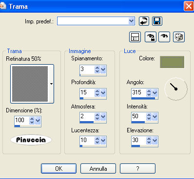 2. Effetti>Effetti di trama>Trama - seleziona la trama Retinatura 50% (standard in PSP), con i seguenti settaggi,