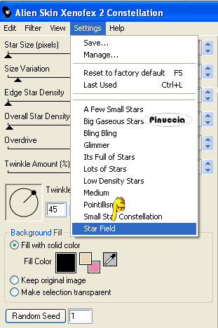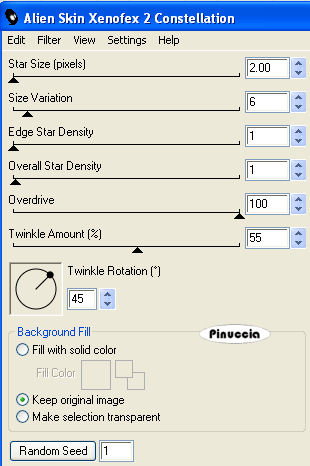 Effetti>Plugins>Xenofex 2 - Constellation - clicca una volta su Random seed.