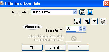 qui puoi trovare qualche risposta ai tuoi dubbi. Se l'argomento che ti interessa non è presente, ti prego di segnalarmelo. Questo tutorial è stato scritto con PSP 9, ma può essere eseguito anche con le altre versioni di PSP. Per tradurlo, ho usato PSP X. Occorrente: Materiale qui Lo scrapkit è di Sweetie Pea e lo trovi qui Mantieni il materiale intatto e rispetto il lavoro degli autori. 1. Apri una nuova immagine bianca 600 x 600 pixels. Dallo scrapkit apri PPP Paper 2 e vai a Modifica>Copia. Torna al tuo lavoro e vai a Modifica>Incolla come nuovo livello. 2. Livelli>Carica/salva maschera>Carica maschera da disco. Cerca e carica la maschera Montblinds1: ![]() Livelli>Unisci>Unisci gruppo. ![]() 3. Livelli>Duplica. Effetti>Effetti geometrici>cilindro orizzontale - intensità 50. ![]() Abbassa l'opacità di questo livello al 52. Attiva il livello originale e cambia l'opacità anche di questo livello al 52%. ![]() 4. Attiva il livello superiore. Dallo scrapkit apri PPP Largeframe. Immagine>Ridimensiona, al 70%, tutti i livelli non selezionato. Modifica>Copia. Torna al tuo lavoro e vai a Modifica>Incolla come nuovo livello. Attiva lo strumento Puntatore ,e allarga la finestra in tutti i lati (vedi l'esempio). ![]() Effetti>Effetti 3D>Sfalsa ombra: ![]() Ripeti l'Effetto Sfalsa ombra, cambiando verticale e orizzontale con -3. 6. Livelli>Duplica. 7. Apri il tube e vai a Modifica>copia. Torna al tuo lavoro e vai a Modifica>Incolla come nuovo livello. Sposta il tube un po' più in alto, con il capo sulla cornice.Livelli>Disponi>Sposta giù. Effetti>Effetti 3D>Sfalsa ombra, con i settaggi precedenti. Attiva il livello superiore. Attiva lo strumento Gomma ![]() e cancella la parte di cornice che copre la testa del tube. ![]() 8. Dallo scrapkit, apri PPP_butterbow 2. Immagine>Ridimensiona, 2 volte al 50%, tutti i livelli non selezionato. Modifica>copia. Torna al tuo lavoro e vai a Modifica>Incolla come nuovo livello. Immagine>Ruota per gradi - 30 gradi a sinistra. ![]() Sposta il tube a sinistra della cornice.Effetti>Effetti 3D>Sfalsa ombra, come al punto 5. Modifica>Incolla come nuovo livello (il tube è ancora in memoria). Immagine>Ruota per gradi - 30 gradi a destra. ![]() Sposta il tube a destra della cornice.Effetti>Effetti 3D>Sfalsa ombra, come al punto 5. 9. Dallo scrapkit apri PPP_tag 1. Immagine>Ridimensiona, 2 volte all'80%, tutti i livelli non selezionato. Modifica>Copia. Torna al tuo lavoro e vai a Modifica>Incolla come nuovo livello. Sposta la targa in basso a sinistra della cornice.Effetti>Effetti 3D>sfalsa ombra, come al punto 5. Ripeti l'Effetto Sfalsa ombra, cambiando verticale e orizzontale con -3. 10. Dallo scrapkit apri PPP_Bow. Immagine>Ridimensiona, 2 volte al 50%, tutti i livelli non selezionato. Modifica>Copia. Torna al tuo lavoro e vai a Modifica>Incolla come nuovo livello. Immagine>Ruota per gradi - 30 gradi a sinistra. Sposta il tube sopra la targhetta.Attiva lo strumento Gomma ![]() e cancella il nastro che copre il testo (nel mio esempio ho cancellato anche il nastro a sinistra). ![]() Effetti>Effetti 3D>sfalsa ombra, come al punto 5. 11. Livelli>Unisci>Unisci tutto. 12. Imposta il colore di primo piano con il bianco (#ffffff), e il colore di sfondo con #5a0123. Immagine>Aggiungi bordatura, 1 pixel, simmetriche, con il colore di sfondo #5a0123. Immagine>Aggiungi bordatura, 20 pixels, simmetriche, con il colore bianco. Immagine>Aggiungi bordatura, 1 pixel, simmetriche, con il colore di sfondo #5a0123. Aggiungi il tuo nome e/o il tuo watermark e salva in formato jpg. ![]() Se hai problemi o dubbi, o trovi un link non funzionante, o anche soltanto per un saluto, scrivimi. 3 Ottobre 2008 |