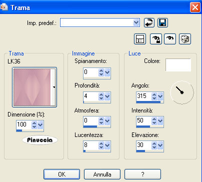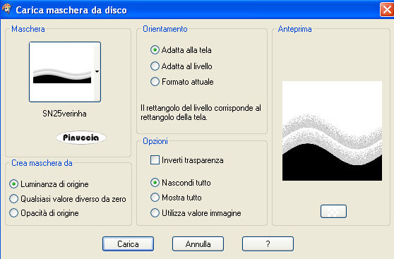 qui puoi trovare qualche risposta ai tuoi dubbi. Se l'argomento che ti interessa non è presente, ti prego di segnalarmelo. Questo tutorial è stato scritto con PSP 9, ma può essere eseguito anche con le altre versioni di PSP. Per tradurlo, ho usato PSP X. Occorrente: Materiale qui Il tube della donna viene da Picture Store Rispetta il lavoro degli autori e mantieni inalterati i tubes. Filtro: Greg's Factory Output II qui ![]() Preparazione: Metti la maschera SN25verinha nella cartella Maschere. Metti la trama L&K36 nella cartella Trame. Metti le forme "Objecten.jsl" nella cartella Forme predefinite di PSP. Apri il font e minimizzalo nella tua area di lavoro. Lo troverai nella lista dei font disponibili quando ti servirà. Imposta il colore di primo piano con #c0bbba, e il colore di sfondo con il nero. Passa il colore di primo piano a Gradiente di primo piano/sfondo, con i seguenti settaggi: ![]() ![]() 1. Apri una nuova immagine trasparente 600 x 600 pixels, e riempila con il gradiente.Regola>Sfocatura>Sfocatura gaussiana - raggio 15. ![]() Effetti>Effetti di trama>Trama - seleziona la trama LK36, con i seguenti settaggi: ![]() Effetti>Effetti di bordo>Aumenta. 2. Livelli>Nuovo livello raster. Riempi il livello con il colore nero di sfondo.3. Livelli>Carica/Salva maschera>Carica maschera da disco. Cerca e carica la maschera SN Verhina. ![]() Livelli>Unisci>Unisci gruppo. Nella paletta dei livelli abbassa l'opacità di questo livello al 48%. 4. Attiva lo strumento Forme predefinite ![]() e seleziona la forma Globe 1: ![]() con i seguenti settaggi: ![]() Traccia il globo partendo dall'angolo in alto a sinistra fino all'angolo in basso a destra. ![]() Livelli>Converti in livello raster. 5. Apri il tube Misted L56, e vai a Modifica>Copia. Torna al tuo lavoro e vai a Modifica>Incolla come nuovo livello. Sposta il tube in basso a sinistra.Livelli>Duplica. Livelli>Unisci>Unisci giù. Effetti>Effetti 3D>Sfalsa ombra, con i seguenti settaggi. ![]() 6. Attiva il livello del globo. Attiva lo strumento Gomma e cancella dal tube della donna i segni del globo.![]() ![]() 7. Apri il tube hartjes, e vai a Modifica>copia. Torna al tuo lavoro e vai a Modifica>Incolla come nuovo livello. Sposta i cuori sul globo.Effetti>Effetti 3D>sfalsa ombra, con i settaggi precedenti, ma con il colore dell'ombra bianco: ![]() 8. Apri il tube bloemetje e vai a Modifica>Copia. Torna al tuo lavoro e vai a Modifica>Incolla come nuovo livello. Posiziona il fiore sui cuori (vedi il mio esempio).Livelli>Duplica. Sposta il secondo fiore a sinistra della donna.9. Attiva lo strumento Testo , font BlackChancery, dimensione 48 (per PSP 9; 60 per PSP X), crea come vettore.Scrivi un testo o il mio. Livelli>Converti in livello raster. Effetti>Effetti 3D>Sfalsa ombra, con i seguenti settaggi: ![]() Livelli>Unisci>Unisci tutto. 10. Immagine>Aggiungi bordatura, 2 pixels, simmetriche, con il colore chiaro di primo piano. Immagine>Aggiungi bordatura, 2 pixels, simmetriche, con il colore nero. Immagine>Aggiungi bordatura, 20 pixels, simmetriche, con il colore chiaro. Seleziona questo bordo con la bacchetta magica ![]() ![]() Effetti>Plugins>Greg's Factory Output 2 - Poolshadow, con i settaggi standard. ![]() Selezione>Deseleziona. 11. Immagine>Aggiungi bordatura, 2 pixesl, simmetriche, con il colore chiaro. Immagine>Aggiungi bordatura, 2 pixels, simmetriche, con il colore nero. Aggiungi il tuo nome e/o il tuo watermark, ridimensiona (se vuoi) e salva in formato jpg. Per questo esempio ho usato un tube di Suzi Sgai. ![]() ![]() Se hai problemi o dubbi, o trovi un link non funzionante, o anche soltanto per un saluto, scrivimi 24 Settembre 2008 |