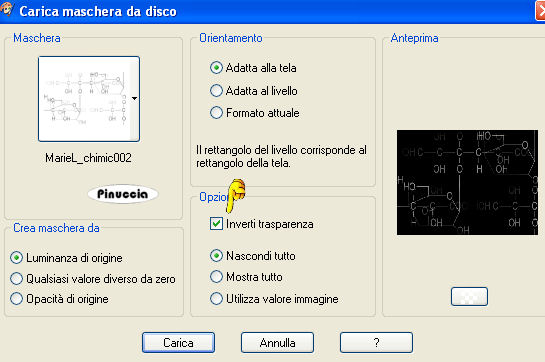 Cerca e carica la maschera Mariel chimic-002, selezionando inverti trasparenza